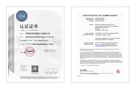 深圳市佳宏源電子有限公司為了給客戶提供優質的產品,從原料的采購、產品的生產、檢測、銷售及售后服務各個環節,都全面嚴格按照ISO9001:2000質量管理體系要求進行監控。公司全部采用進口環保原材料,符合歐盟制定的ROHS指令以及SONY SS-00259環境管理物質要求。幾年來,公司憑借著雄厚的開發、生產、加工能力及優良的品質在業內取得了很聲譽。